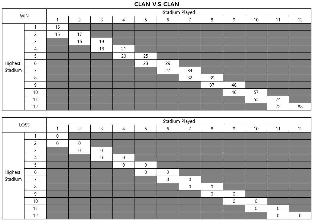 - The amount of Clan Points acquired varies depending on the stadium and whether your opponent is part of a clan or not. Check the table below!