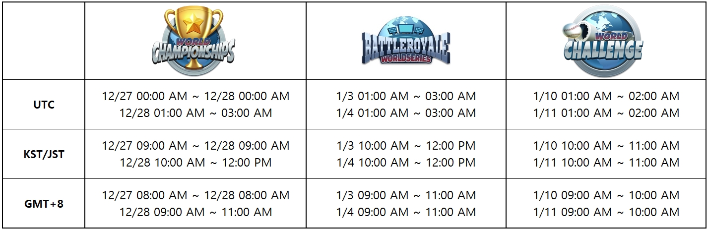 ワールドツアーでは、「ワールドチャンピオンシップ」「ワールドバトルロイヤル」「ワールドチャレンジ」の中から1つが開催国のピークタイムに合わせて開催されます。